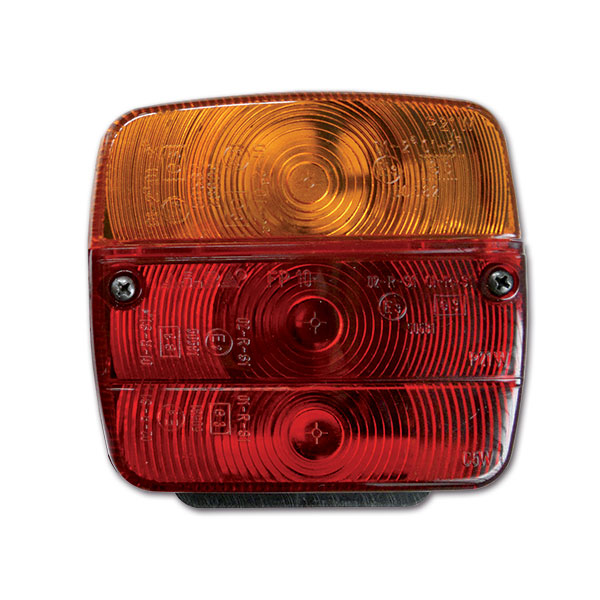 Modulo carrello, lato montaggio DX/SX. Funzioni: posizione/stop, indicatore di direzione e luce targa. Dimensioni:105 x 100 x 52 mm.