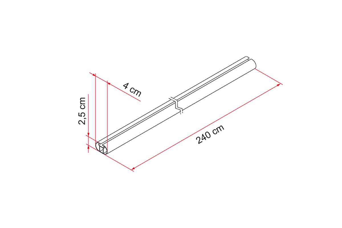 Barra portatutto in estrusione di alluminio, facilmente accorciabile.