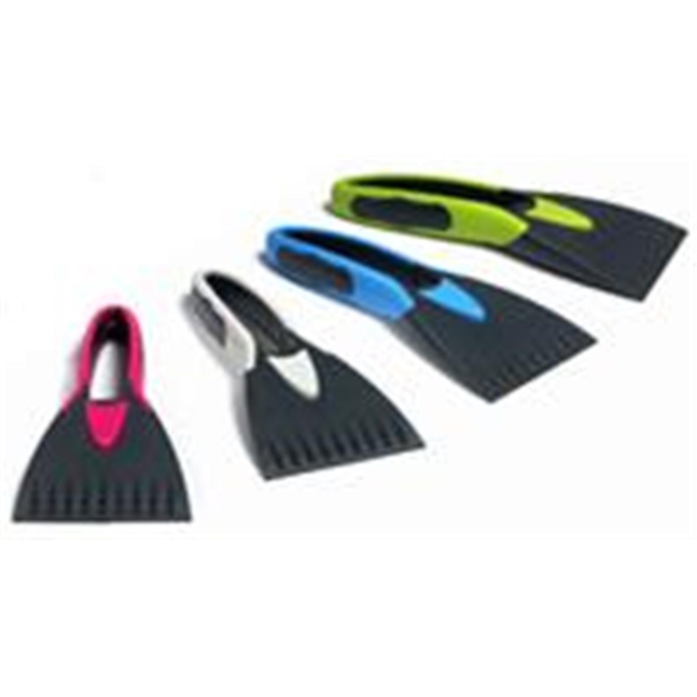 Raschiaghiaccio per vetri auto con manico soft. Colori assortiti. Dimensioni: 21x9,5 cm.
