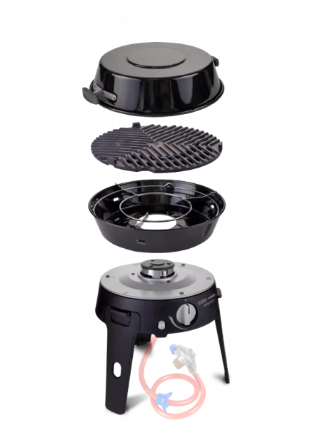 Questo barbecue a gas è un vero coltellino svizzero della cucina mobile. È dotato di diverse superfici di cottura: una griglia antiaderente per grigliare carne e verdure, un wok/coperchio per cuocere a fuoco lento e un supporto per pentole. In questo modo potrà personalizzare i suoi pasti in base ai suoi gusti e al numero di persone presenti a tavola.
