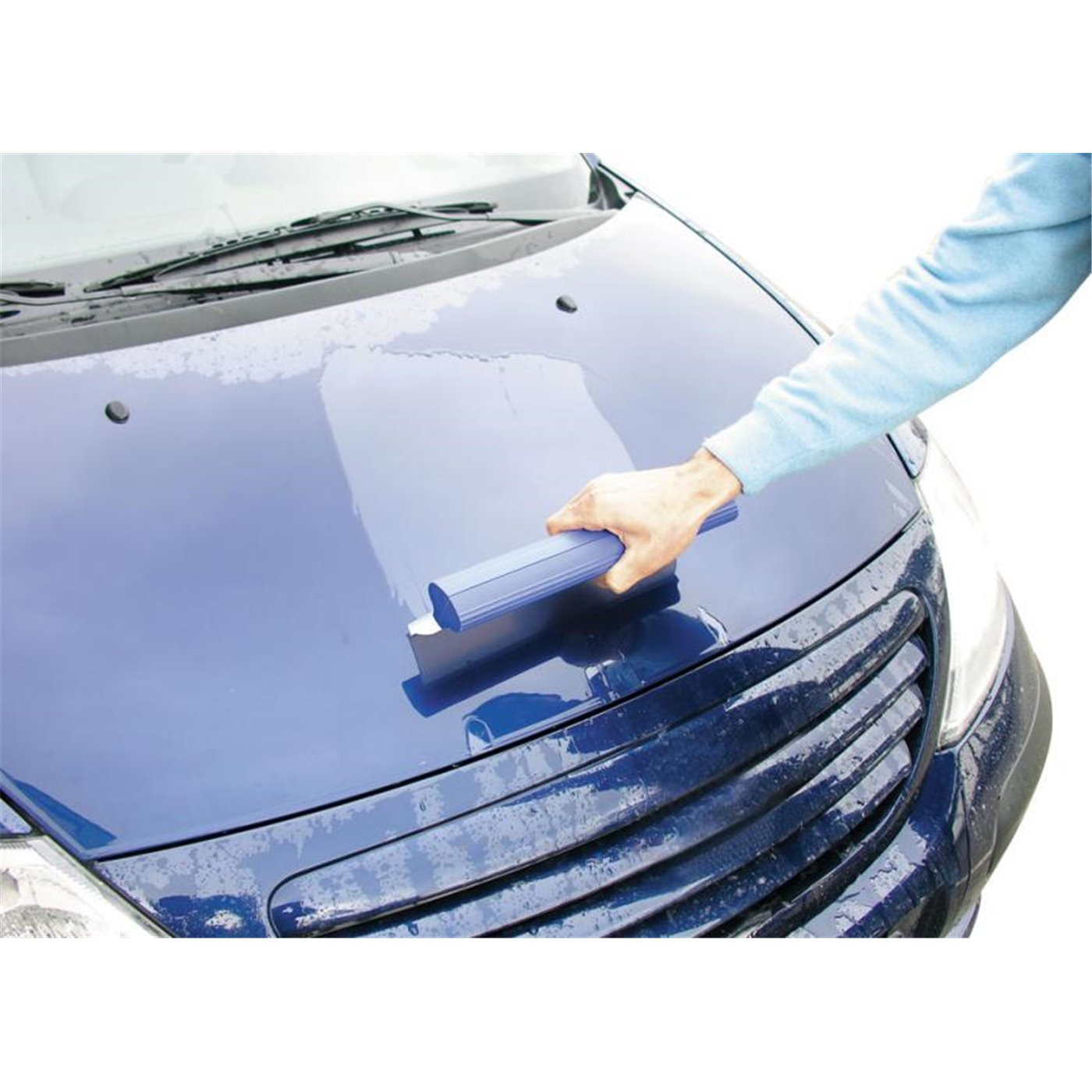 Spazzola tergente con lama in silicone da usare dopo aver lavato e risciacquato l'auto prima dell'asciugatura con la pelle. Rimuove in modo veloce l'acqua depositata su vetri e carrozzeria riducendo notevolmente i tempi di asciugatura. Basta infatti passare la lama in silicone sulle parti bagnate e trascinarla: l'acqua scompare lasciando pochissimi residui che verranno poi rimossi al passaggio della pelle. La lama in silicone, essendo particolarmente morbida e duttile, si adatta perfettamente alle curvature della carrozzeria rendendo il lavoro facile e piacevole.